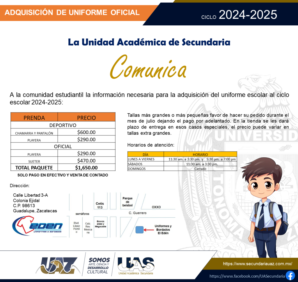 La adquisición del uniforme deportivo y oficial podrás hacerlo a partir del 01 de agosto del presente año (es obligatorio que lo portes desde el primer día de clases).
